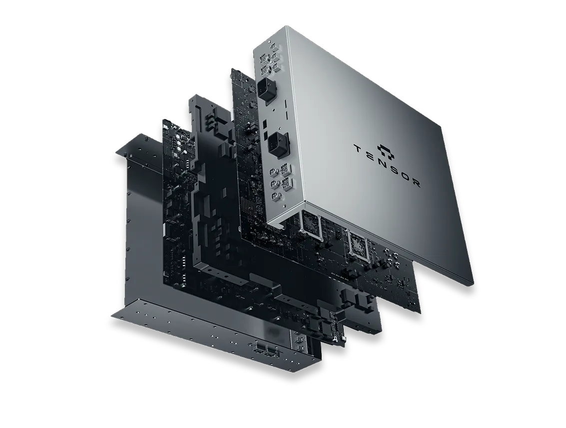 With 10 GPUs, 144 CPU cores, and high-speed processors streaming over 53 gigabits of sensor data per second (~1,000x faster than typical home internet), Tensor delivers the real-time intelligence needed for advanced autonomy.