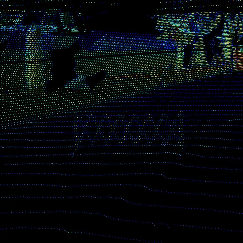 In this scenario, a pedestrian stands about 135 ft from the lidar. With today’s best off-the-shelf systems, the AI receives barely eight horizontal data points—hardly enough for reliable recognition. By contrast, our Tensor Halo Hyper-Lidar delivers dramatically higher resolution, empowering AI to detect and classify objects with unmatched clarity and confidence, eliminating ambiguity in critical situations.