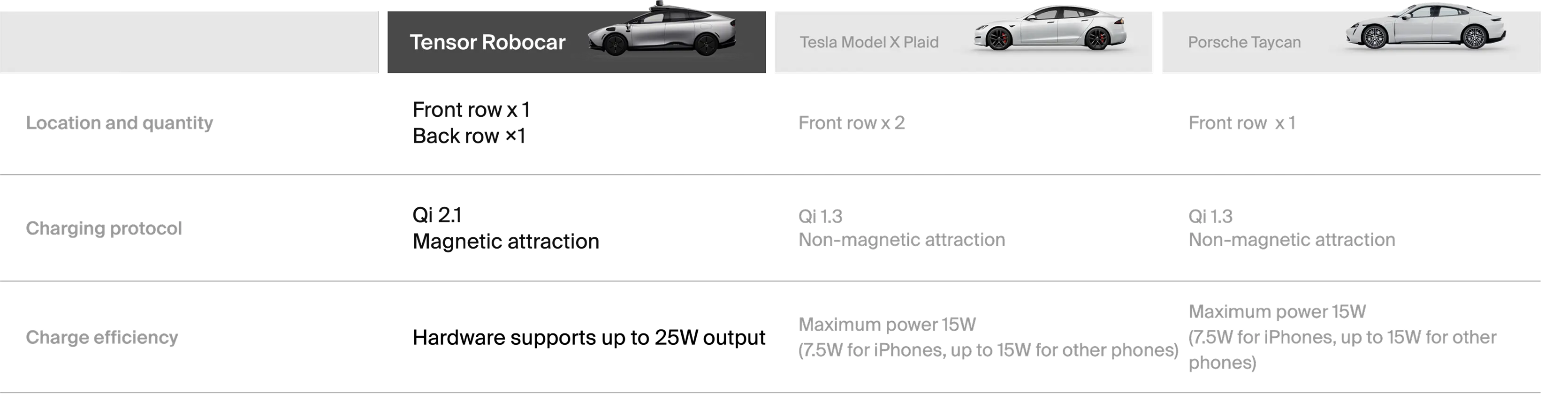 Tensor’s Multi-Heat-Source Coupled Heat Pump System recycles waste heat from the supercomputer, sensors, and other components to warm the cabin and battery. By balancing heating and cooling needs, it boosts winter driving range by over 20% while ensuring all-weather comfort.