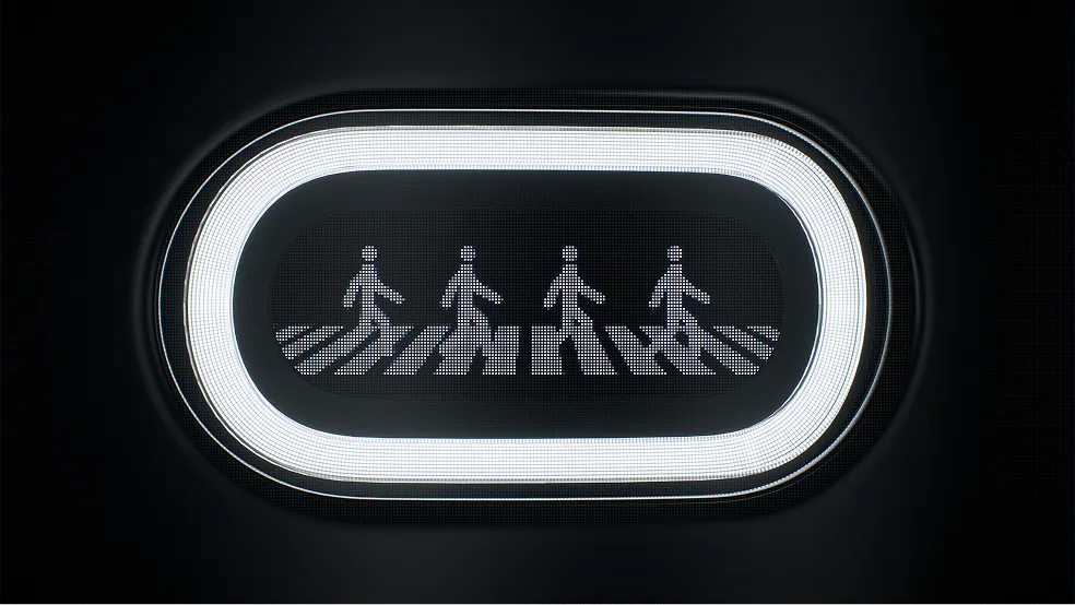 Tensor’s Robocar uses four P1-grade RGB MiniLED displays integrated with its Daytime Running Lights to communicate with pedestrians, cyclists, and other vehicles. Each display packs 7,496 MiniLEDs for bright, weather-resistant animations that signal intent, show status, or deliver personalized messages.