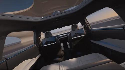 This elegant design also promotes energy efficiency. An air drag coefficient of 0.253 has been achieved. For an SUV of its size and weight—particularly one with numerous external sensors—this drag coefficient is considered low. This highly aerodynamic excellence is not only environmentally friendly but also conserves extra electricity to power the autonomous driving sensors and supercomputer.